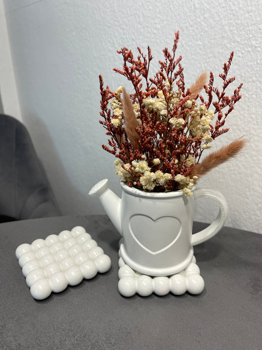 Herbstliche Gießkanne aus Beton mit Trockenblumen