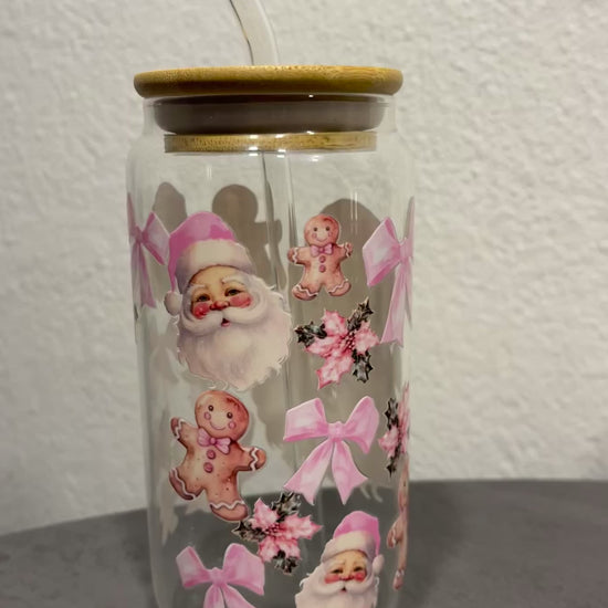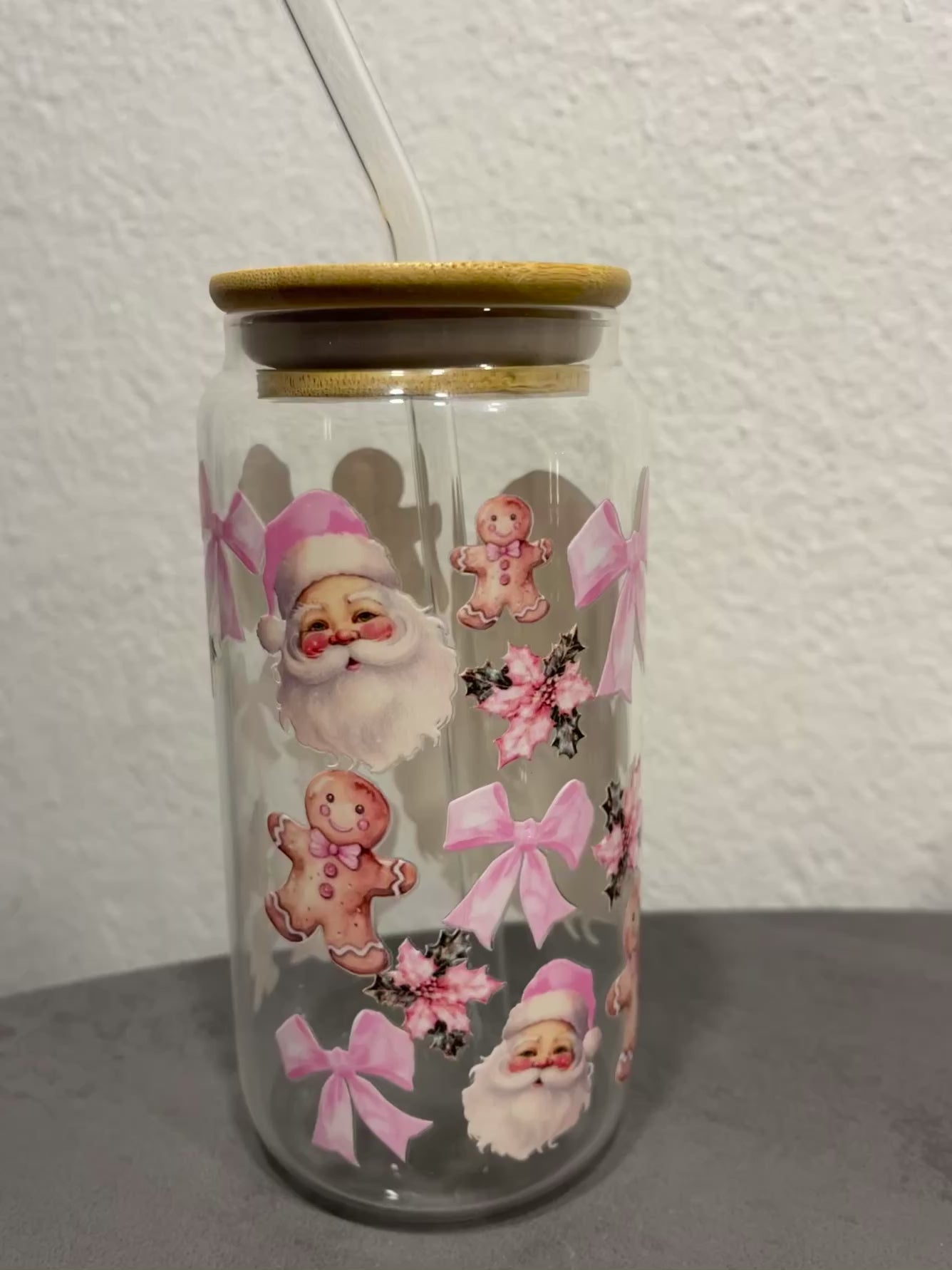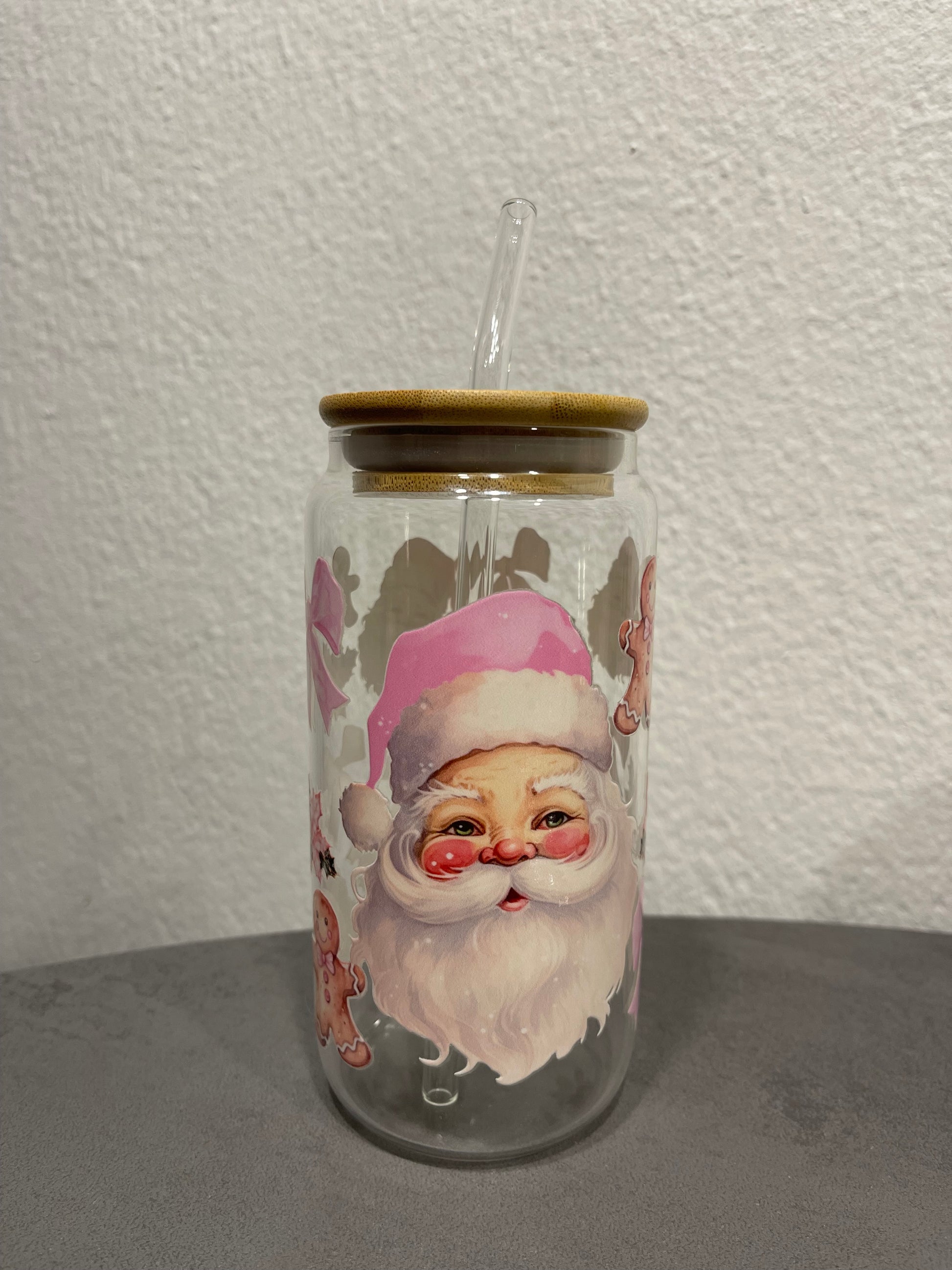 „Santa's Cup„ Trinkbecher mit Deckel & Strohhalm aus Glas