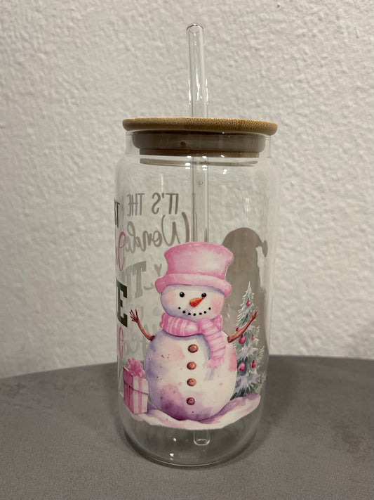 „Weihnachtszeit„ Trinkbecher mit Deckel & Strohhalm aus Glas